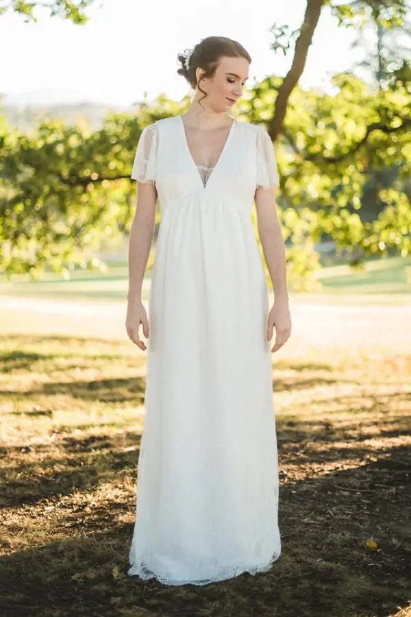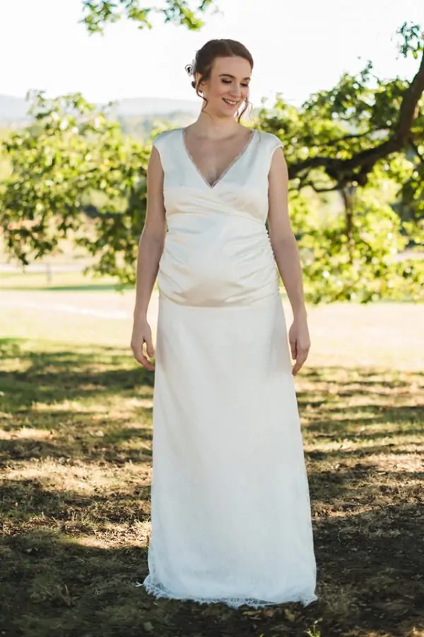Pas d’inquiétude ! Pour une robe de mariée enceinte, je prévois toujours un ajustement final quelques semaines avant le grand jour.